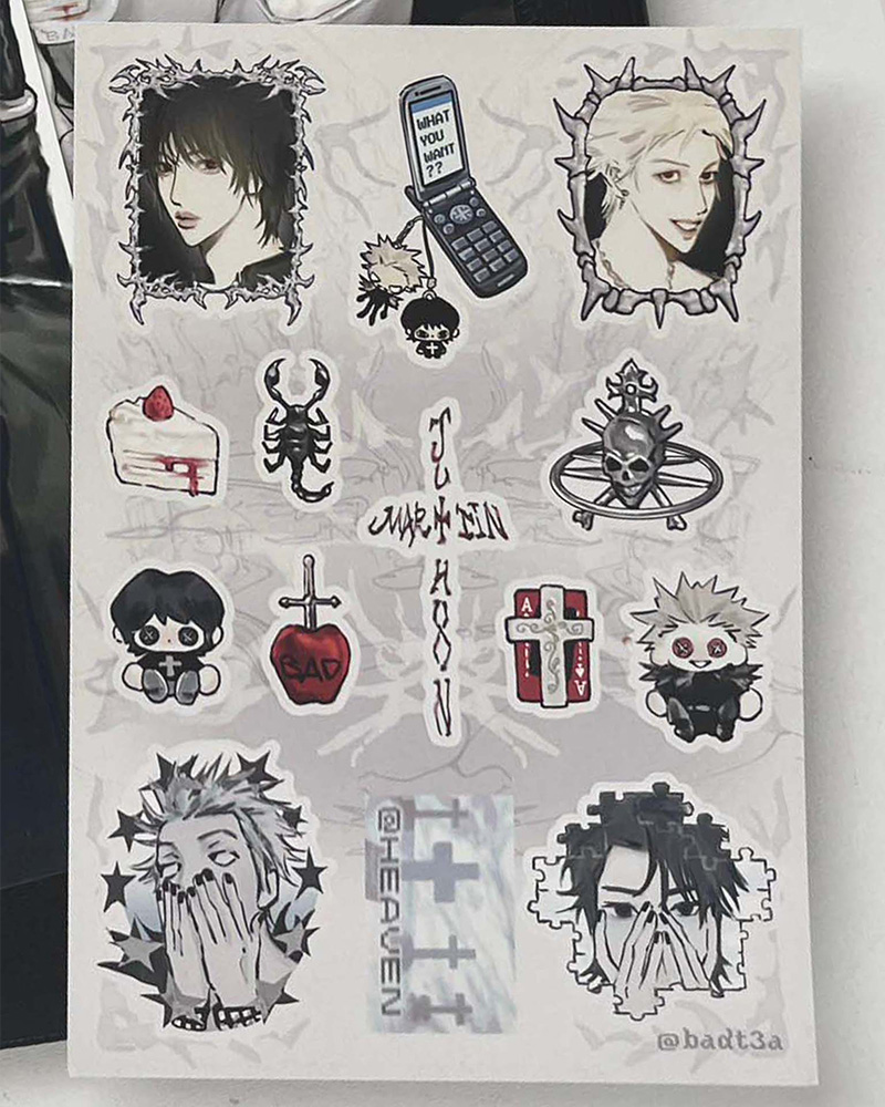 ผู้จัดทำ : badt3a อ้างอิงจากเรื่อง: Martin Juhoon (Cortis) x Death note ลักษณะของสินค้า: Sticker A6, Silver paper ออกขายครั้งแรก: 2025