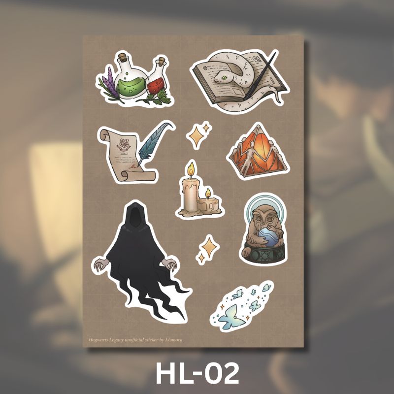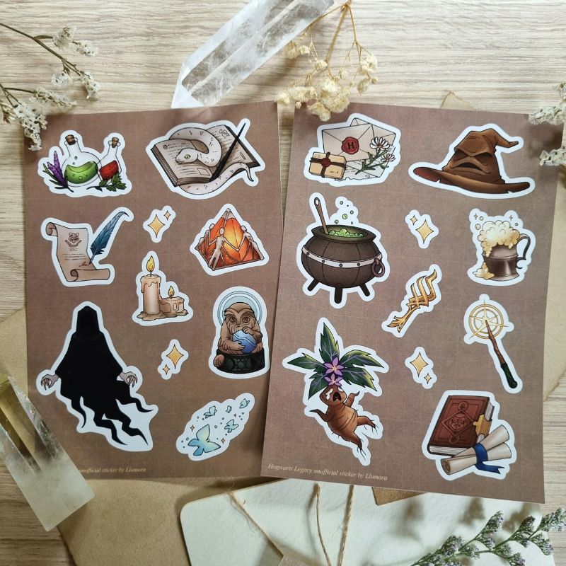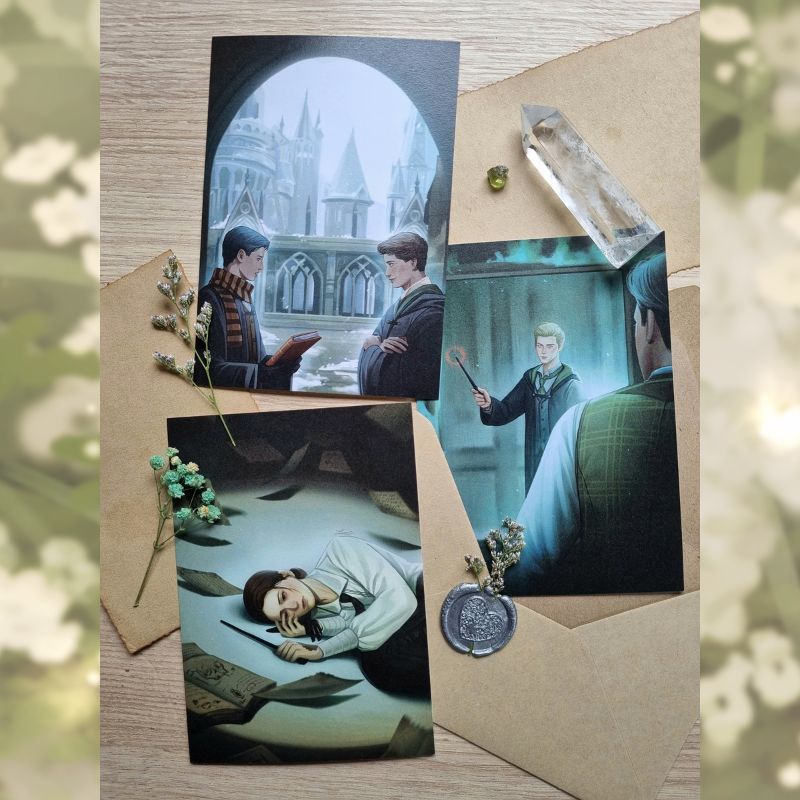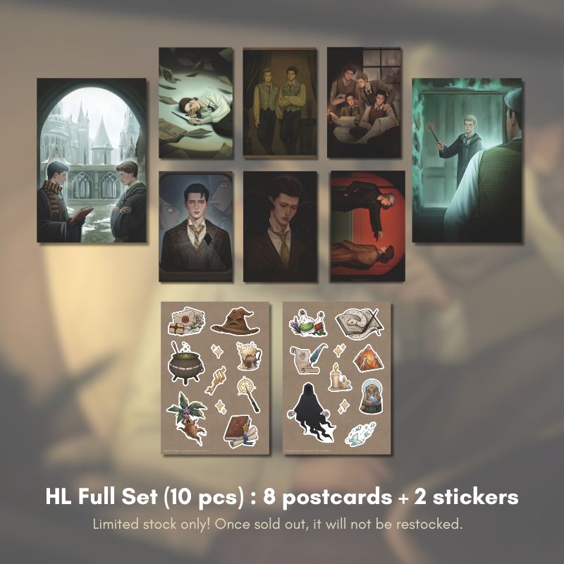 This collection captures moments between Canon characters and my MC (OC) from Hogwarts Legacy, visualized through my own interpretation as the artist. Some of the postcards were previously shared on social media, but I handpicked specific artworks to be printed physically. The stickers are brand new illustrations created exclusively for CA10! (Please note: actual colors may differ slightly from what you see on screen due to printing and coating.)